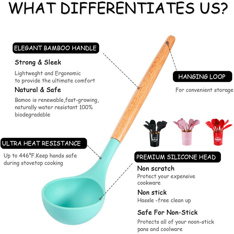A durable and safe solution for your cooking needs. The silicone heads used in this set have been approved for food safety and won't scratch or damage nonstick cookware like metals often do.