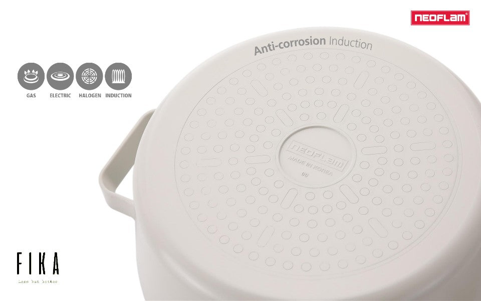 ENERGY EFFICIENCY Crafted with lightweight cast aluminum technology, FIKA cookware is 1/3 the weight of cast iron. With superior heat conductivity, it heats food evenly and quickly, cutting down on energy usage and cooking time. Perfect for all stovetops: induction, electric, radiant, and gas.